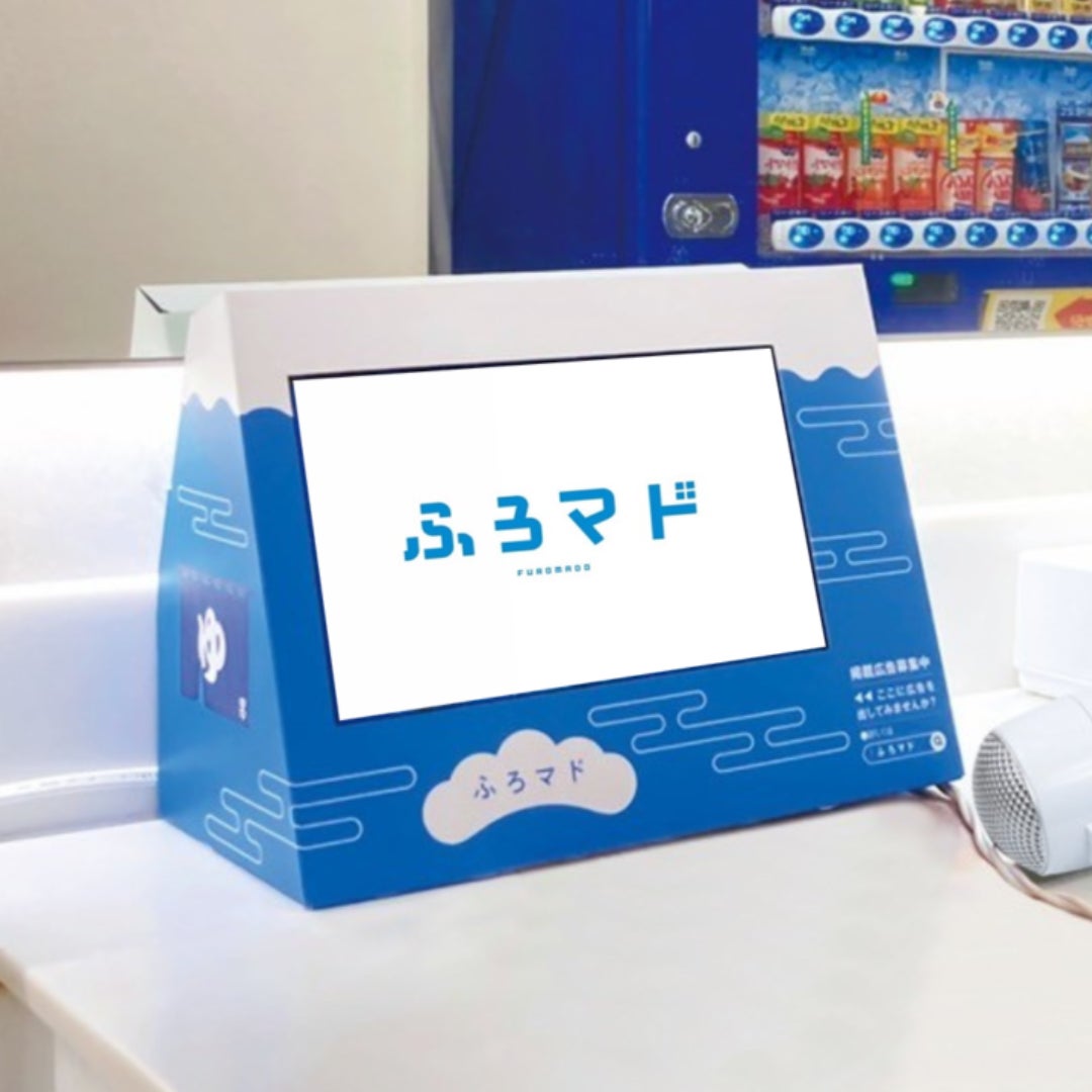 『ふろマド』は銭湯に設置したデジタルサイネージに、広告映像・画像を配信出来るサービスです。